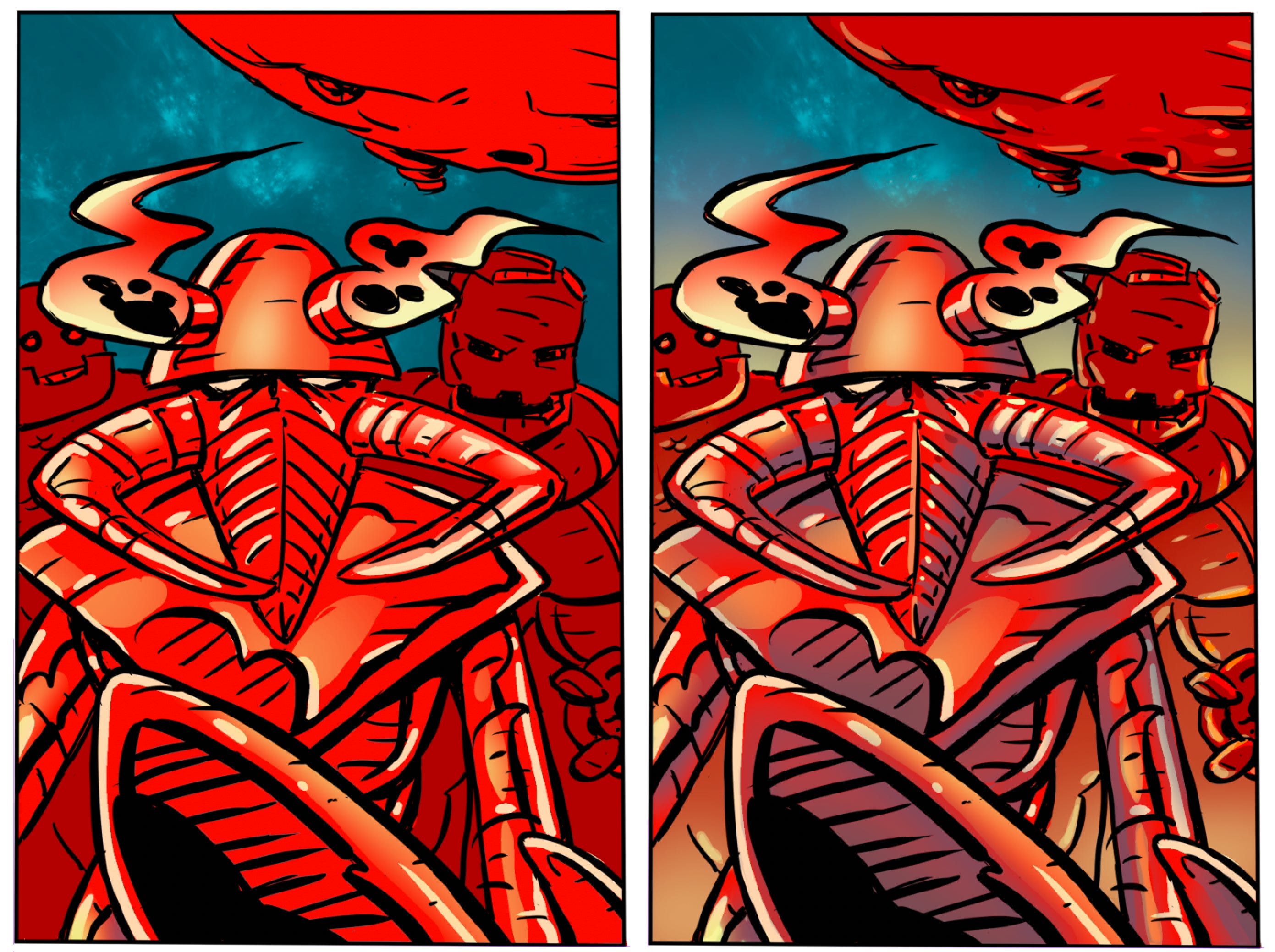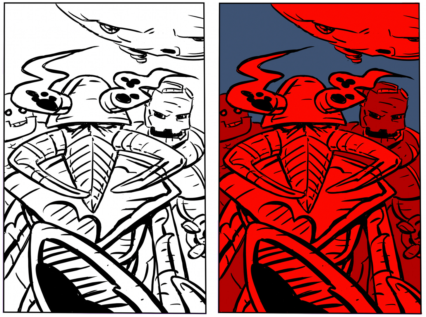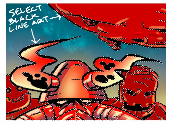 In my last several newsletters, I’ve explored traditional line art and inking—using blacks, feathering, and the terminator. This is where those fundamentals come together and collide with modern digital coloring.