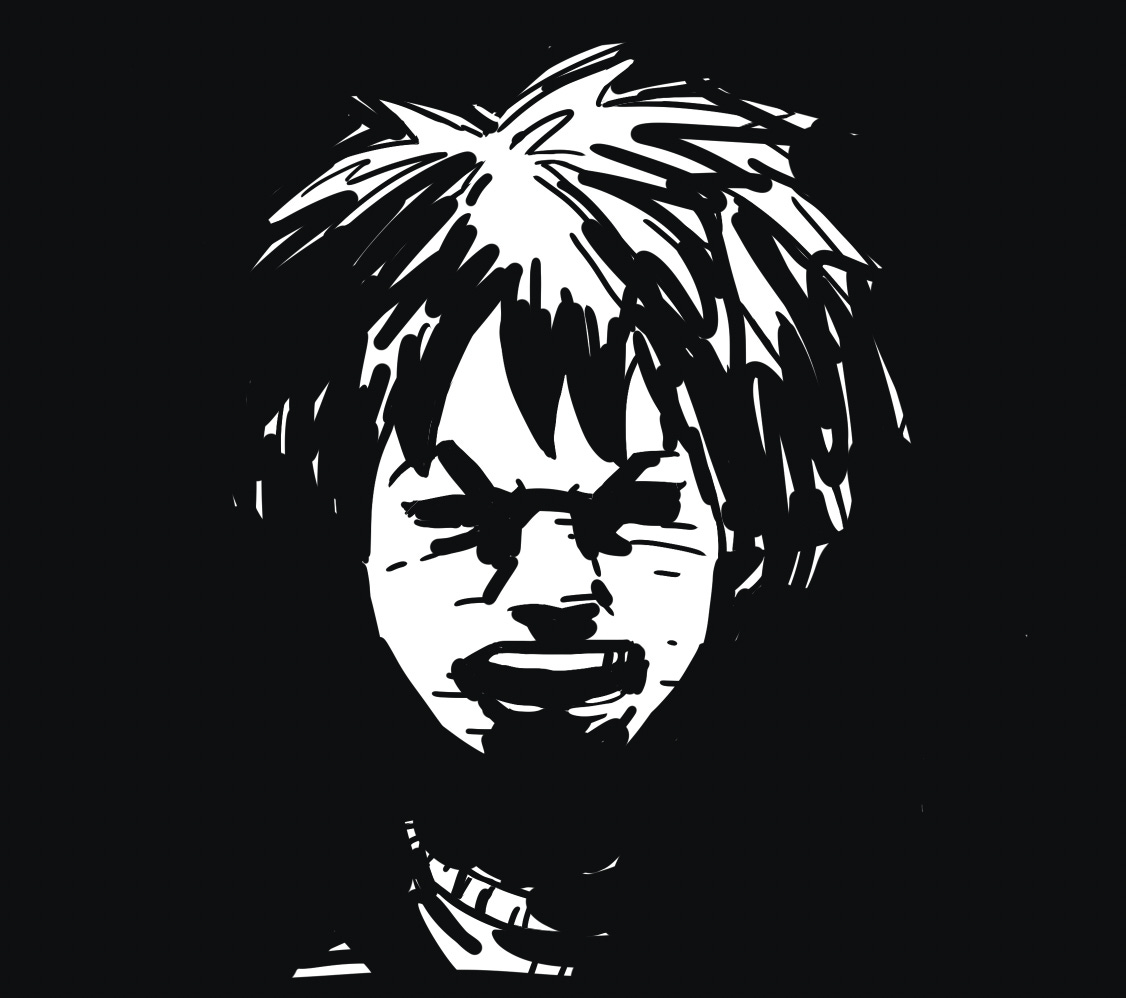 The same drawing, but with the blacks used in a different way. Here, Margo appears to be emerging from the shadows. With just a few well-placed brush strokes, the mood shifts—now it feels angry, defiant, and confrontational.