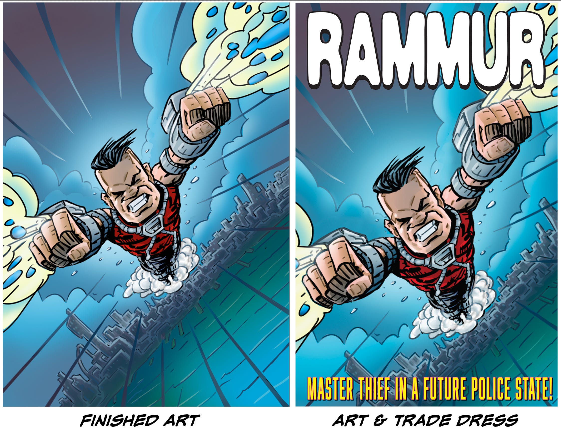 I recently created artwork for the comic series Rammur, the continuing adventures of a “Master Thief in a Police State,” written and created by Charles Santino. Charles sent over a character sheet for reference, and I set out to bring my own interpretation to his creation.